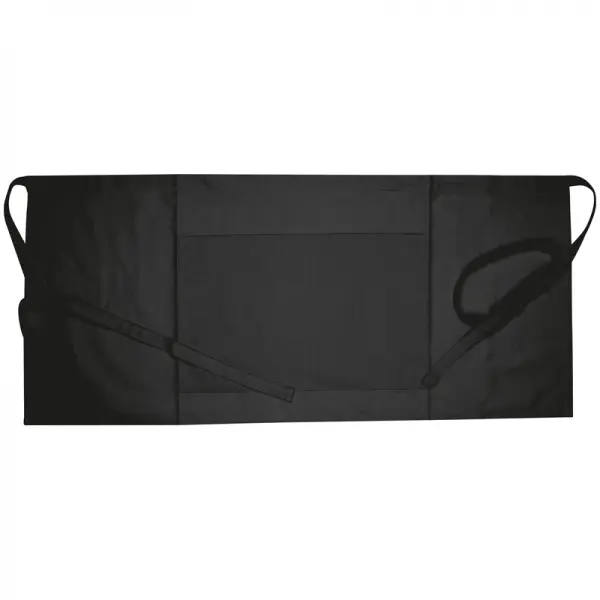 Fartuch wyposażony jest w regulowany pasek na szyję oraz wiązanie w talii, dzięki czemu łatwo dopasowuje się do sylwetki. Z przodu znajduje się praktyczna kieszeń, która pomieści drobne akcesoria, notatki, długopis lub telefon.