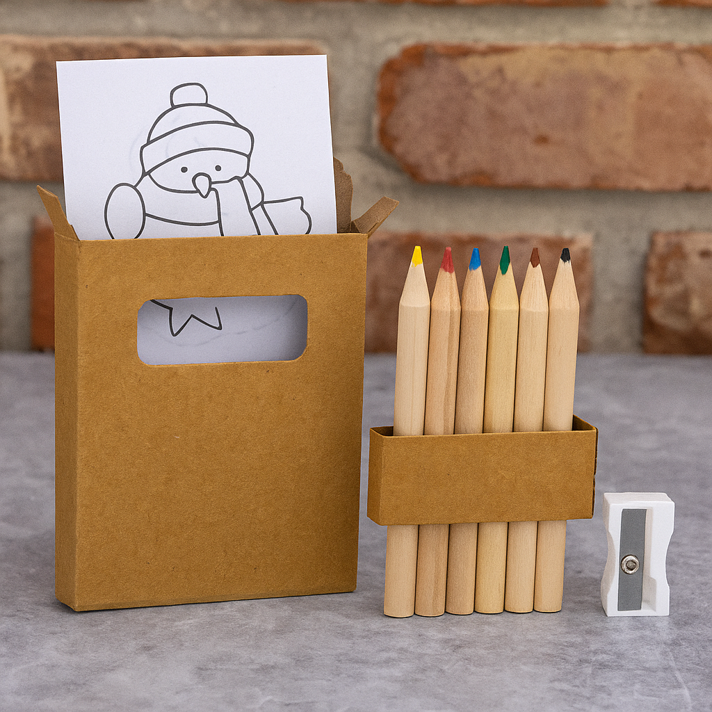 Ten świąteczny zestaw do kolorowania to idealny upominek dla dzieci i dorosłych, którzy kochają twórcze zajęcia. W zestawie znajduje się książeczka do kolorowania, 6 drewnianych kredek oraz temperówka – wszystko zapakowane w ekologiczne pudełko z papieru kraft.
