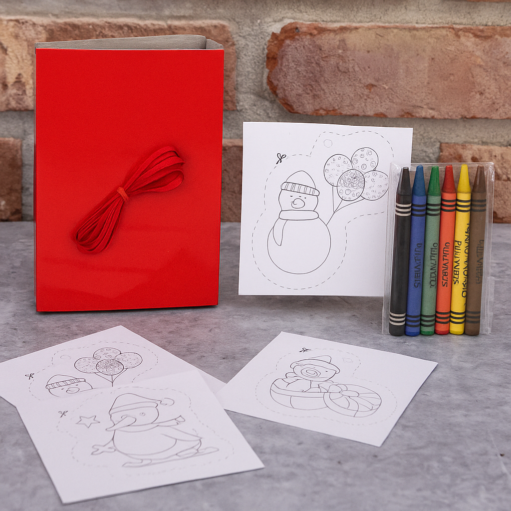 Ten 8-elementowy zestaw do kolorowania na Boże Narodzenie zawiera papierowe ozdoby, 6 kolorowych kredek oraz wstążki do zawieszenia, dzięki którym możesz samodzielnie ozdobić choinkę lub wnętrze. Całość zapakowana jest w eleganckie, czerwone pudełko z papieru, które idealnie wpisuje się w świąteczny klimat.