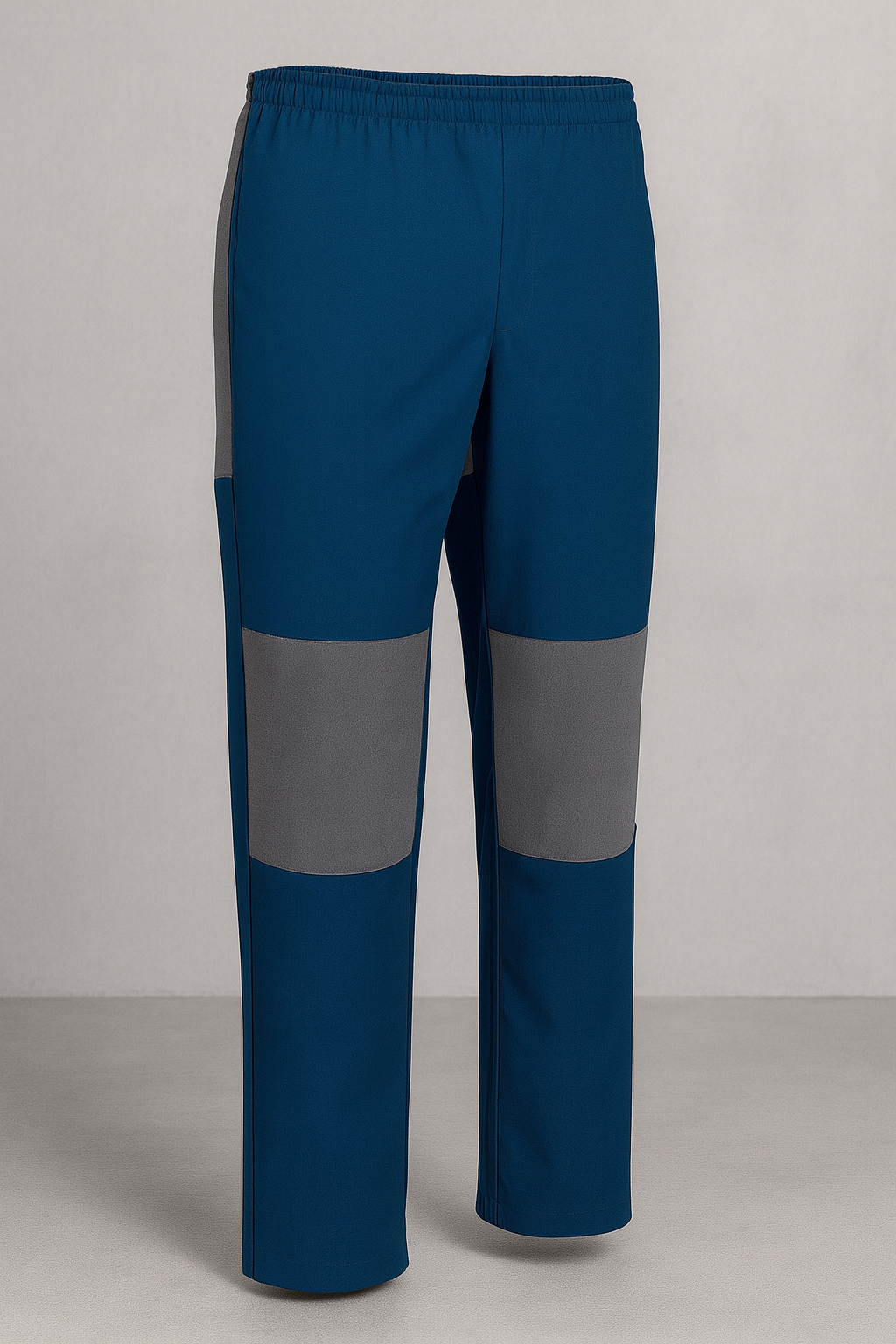The trousers feature waist adjustment with drawstrings, while the contrasting panels on the knees and back enhance both style and functionality. For added practicality, they include two thigh pockets and one zippered back pocket, allowing secure storage of essentials.