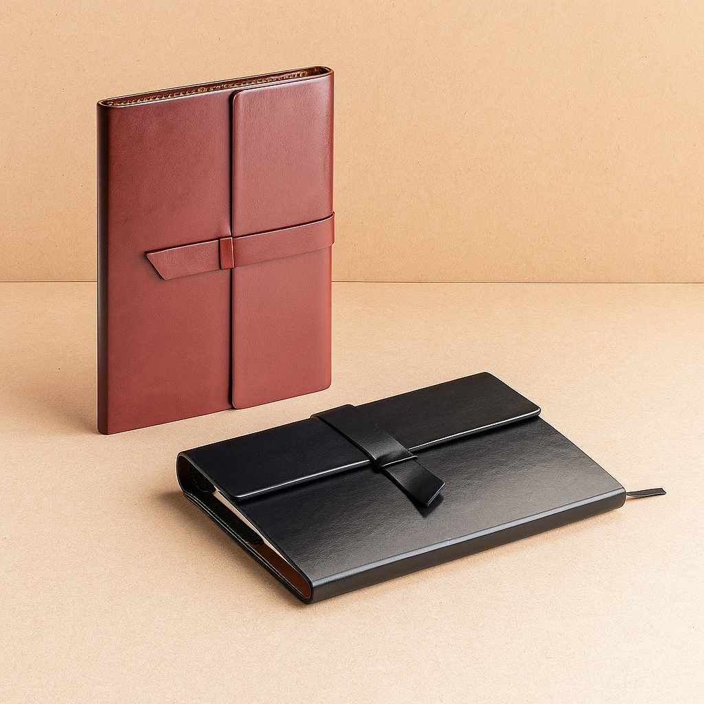 The “Elegance” A5 notebook combines style, practicality, and comfort in a timeless eco-leather cover. It includes 80 lined pages perfect for everyday notes and a handy ribbon bookmark.
