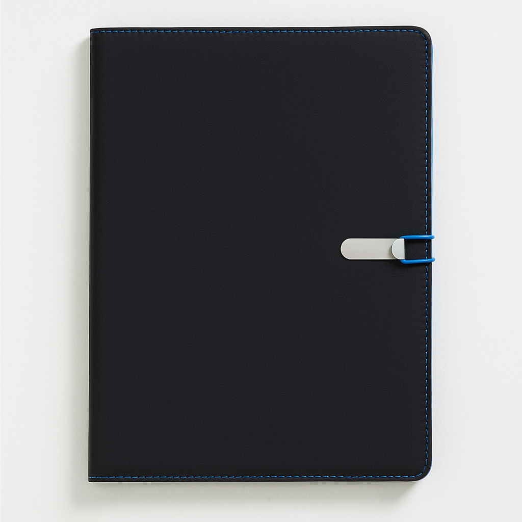 Equipped with an A4 notebook and practical pockets for papers, business cards, and a pen, it helps you stay organized throughout the day. Made from durable materials with a sleek matte finish, the “Holon” folder exudes a professional and modern look.