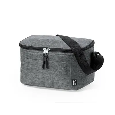 Cooler bag made from RPET, aluminium interior, main compartment zipped, outer pocket, strap