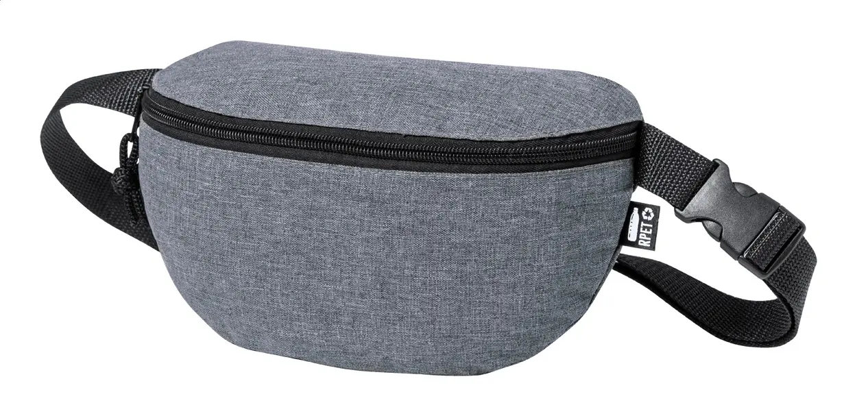 RPET waist bag with zipped compartment and adjustable strap.