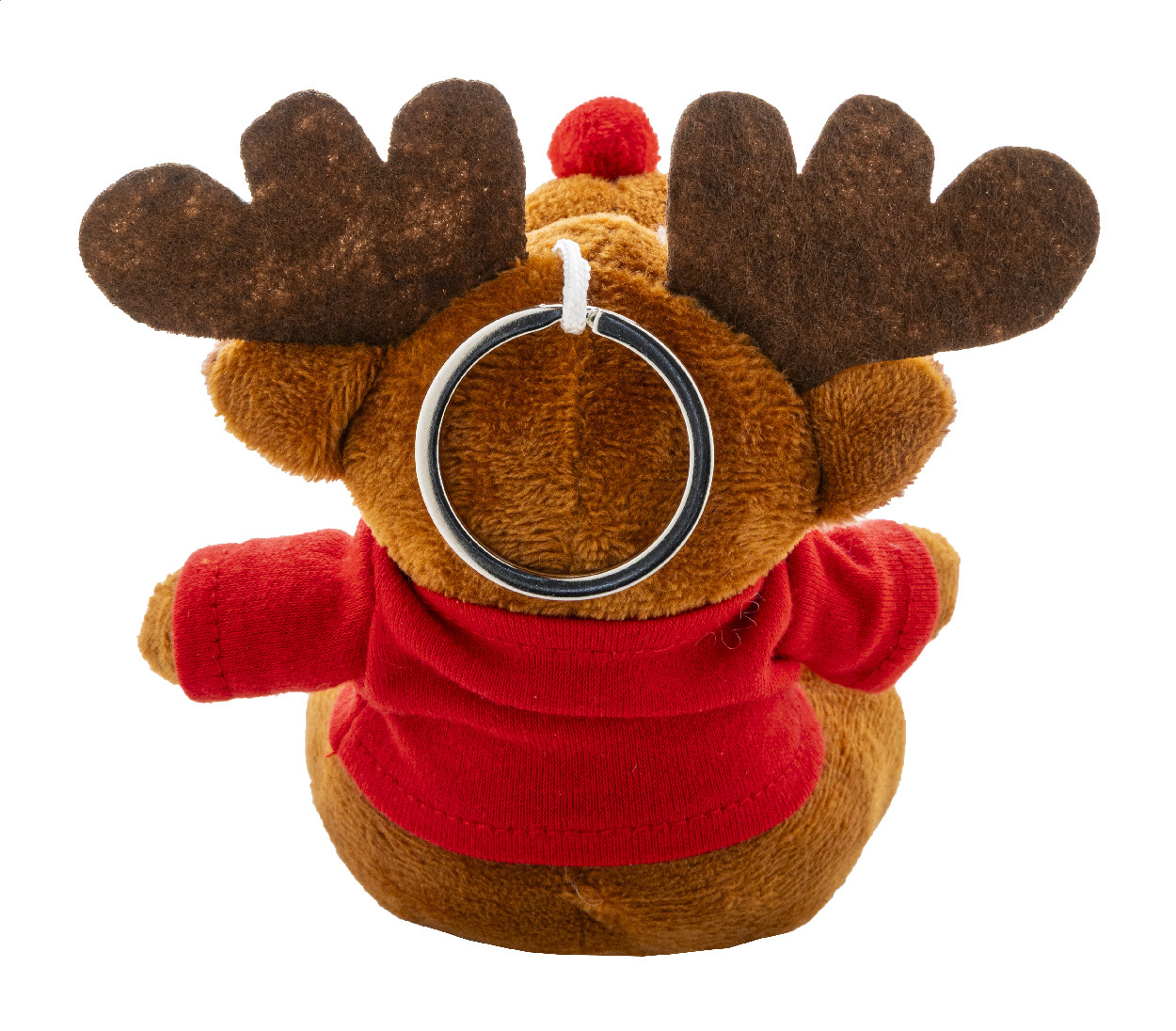 Made of soft, cuddly fabric, it can be easily attached to your keys, bag, or backpack. The reindeer wears a tiny T-shirt ready for custom printing – add your company logo, name, or festive message.