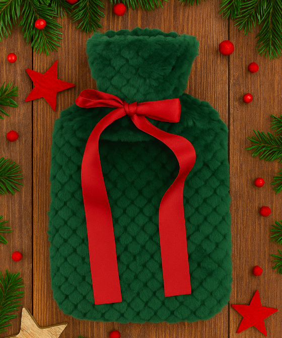 It features a soft, velvety cover decorated with a charming bow and has a 1-liter capacity, providing long-lasting warmth and relaxation.