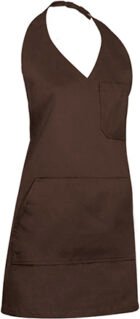 Wide V-neckline with pin tucks on the back for a better fit and thick side straps for optimal waist adjustment with knot ties.