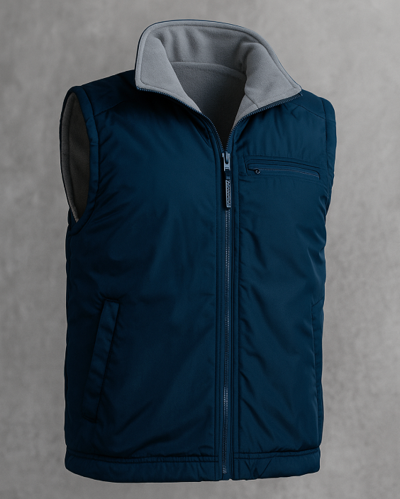 Reversible vest, versatile vest, vest with fleece, stylish vest, practical vest, warm vest, vest for men and women, casual vest, comfortable vest, vest in large sizes, blue vest, quality vest.