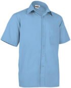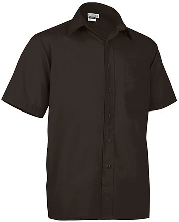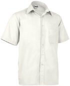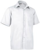 Straight-cut men’s shirt with buttons, made of smooth fabric. The model has a turn-down collar with a stand-up and long sleeves with a button cuff. It has a left chest pocket.