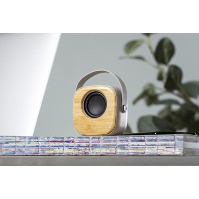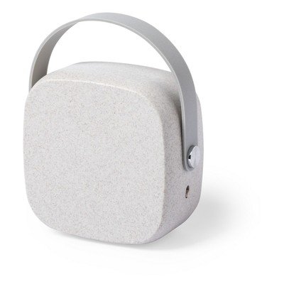 BT 5.0 3W Wireless Speaker with handle, wheat straw and bamboo details, 3.5mm Jack, USB rechargeable, micro USB cable included